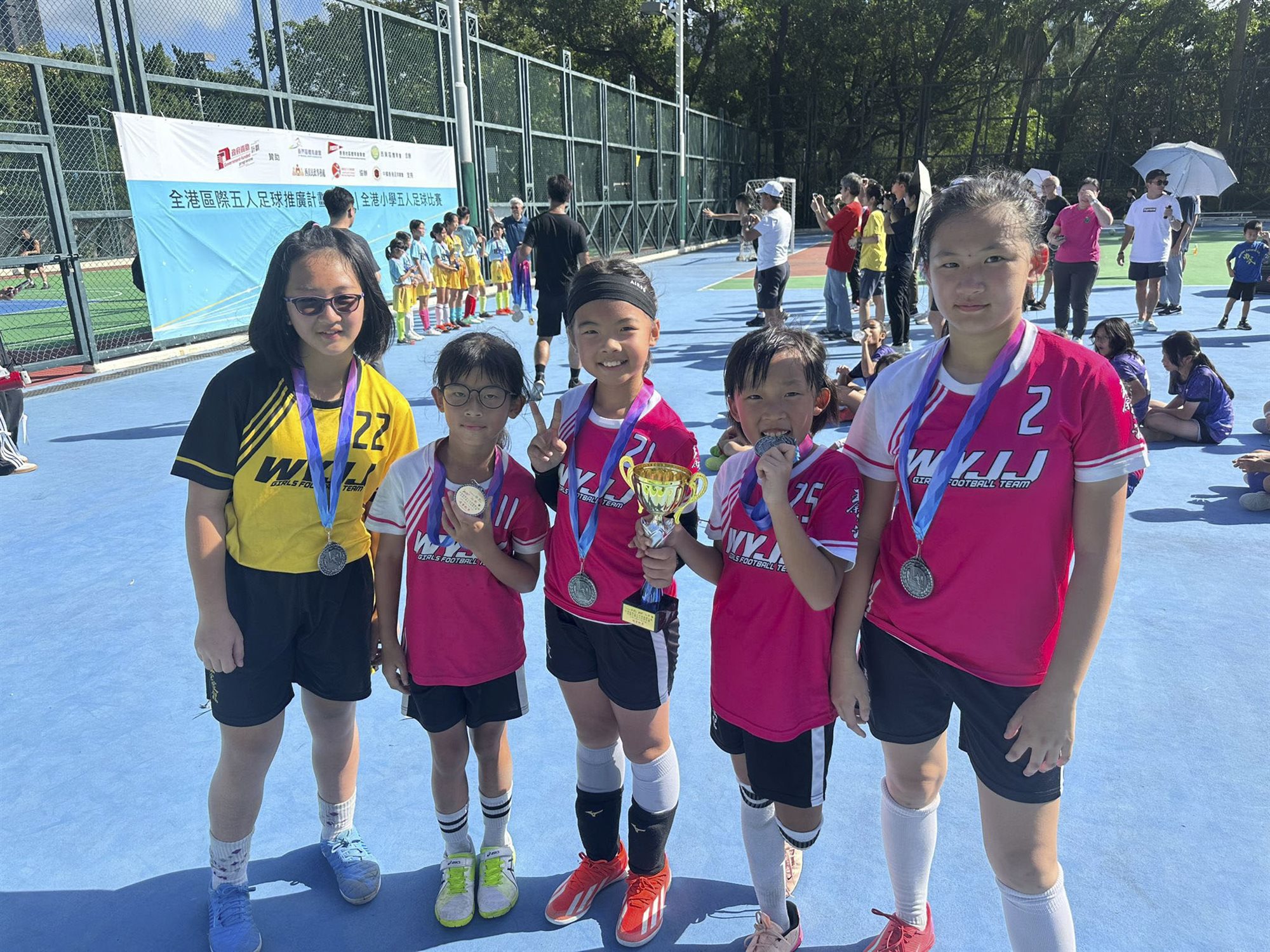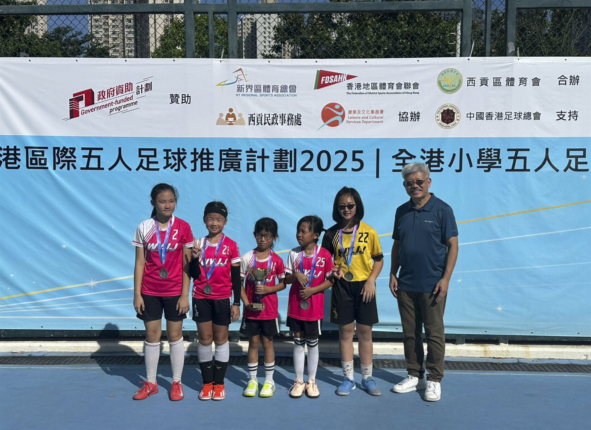 本校的女子足球隊於2025年9月28日(日)及10月11日(六)參加了由西貢區體育會舉辦的「全港區際五人足球推廣計劃2025 - 全港小學五人足球比賽」。由於比賽學校眾多,戰爭非常激烈。最後我校的女子足球隊果然不負重望,奪得女子組(碟賽)【殿軍】。恭喜! 恭喜!