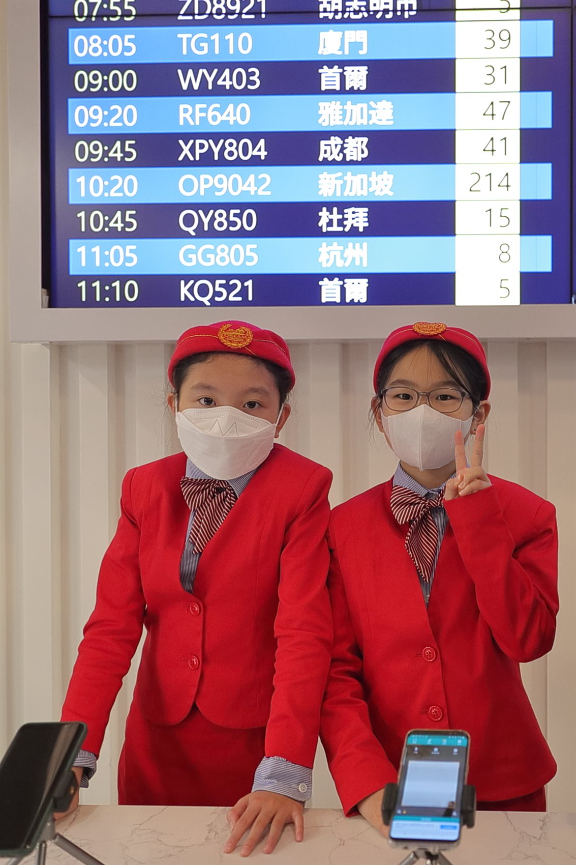 學生到「航空公司櫃位」出示模擬機票,向「關員」出示模擬護照及蓋印章,最後前往「登機閘口」準備「登機」。此外,同學們實時互動,韓國籍導遊帶領學生走訪了青瓦台、景福宮、首爾電視台、北村韓屋村、延南洞、麻浦水產市場、世界杯公園及DIY工作坊等。