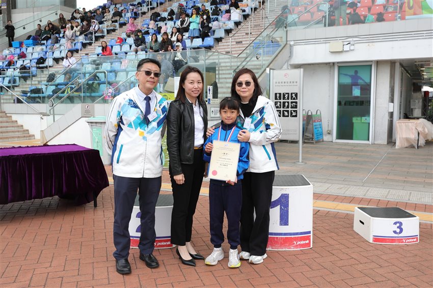 除此之外,我校更獲頒發4個團體獎團體,其中4E黎暟柔於女丙100米及跳遠項目中不僅勇奪冠軍,還同時打破兩項大會紀錄,榮獲【傑出運動員】獎!