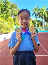 本校的女子田徑隊隊員4E黎暟柔參加由康文署及中西區康樂體育會於灣仔運動場舉辦的「中西區分齡田徑賽2025」,全港所有的運動健兒們奮力作賽,黎暟柔同學發揮王余的拼搏精神,為本校奪得3個個人項目冠軍,其中更打破2項大會紀錄。黎同學得此佳績,恭喜!恭喜!