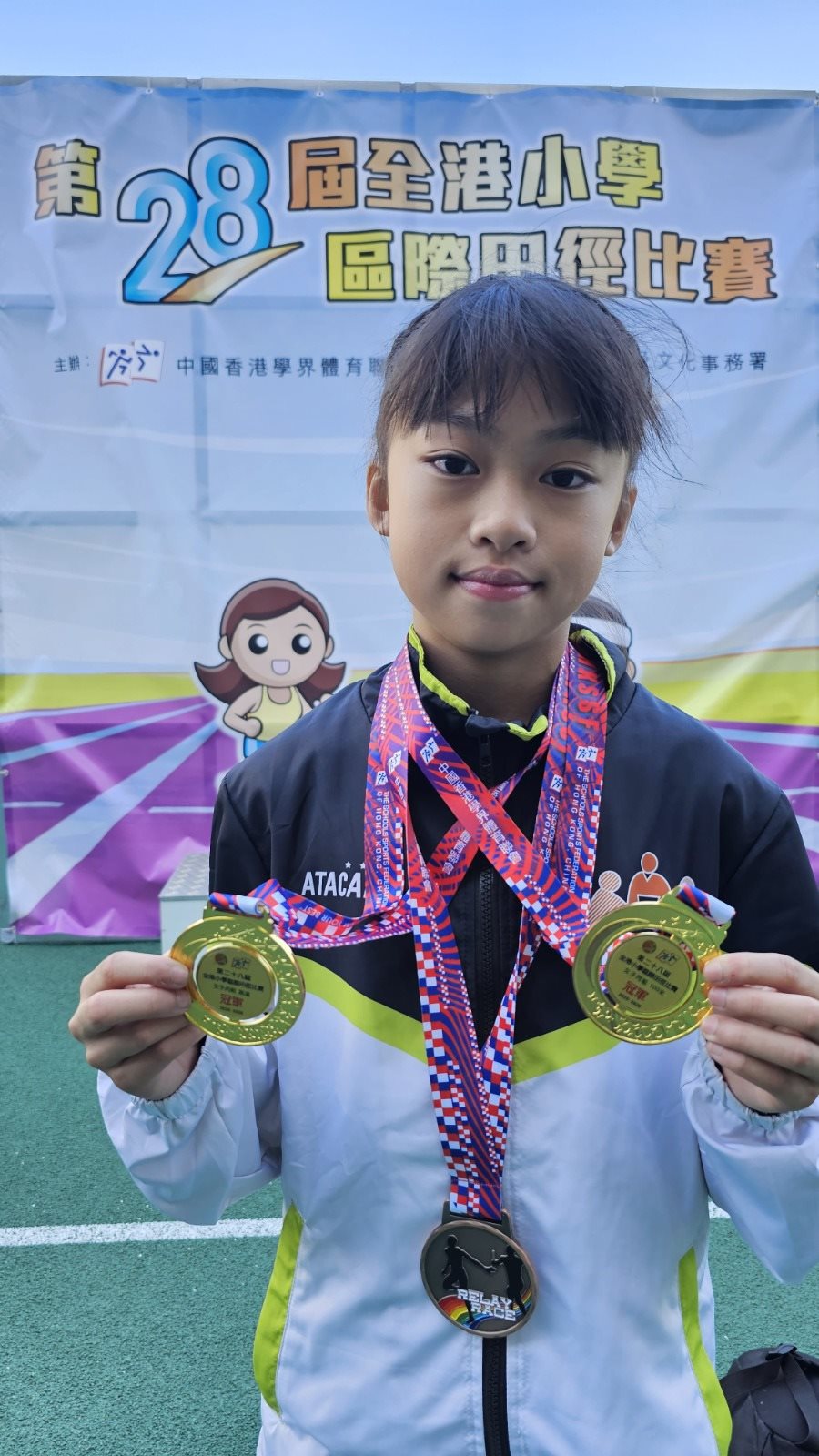 4E黎暟柔同學在2026年3月13日(五)在將軍澳運動場舉行的「全港小學區際田徑比賽」中,面對全港各區最優秀的運動員,憑著她的天份和極之努力的鍛鍊,在兩項個人項目跳遠及100米中,均勇奪冠軍,技驚四座! 之後更帶領西貢區獲得4x100米接力季軍,亦因為各個項目的貢獻令西貢區奪得女子丙組全場總亞軍。 黎暟柔同學不止是西貢區的優秀運動員,更是王余家潔的驕傲!! 希望大家以此為榜樣,亦希望黎同學可以在未來再創佳績!