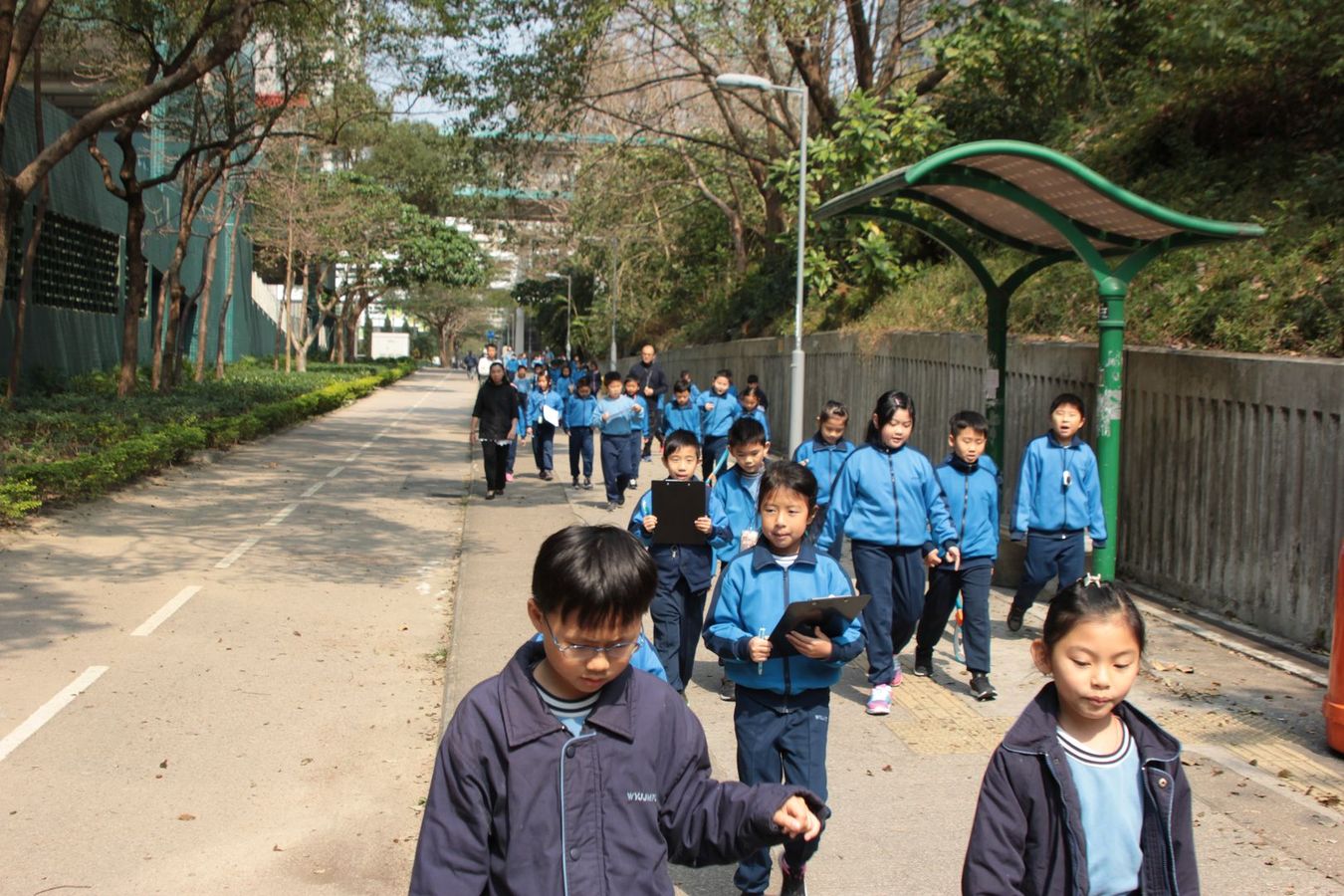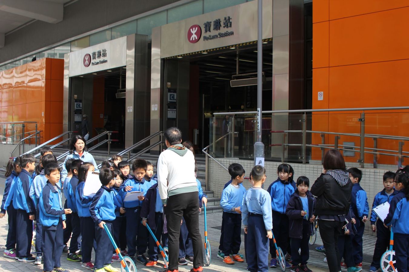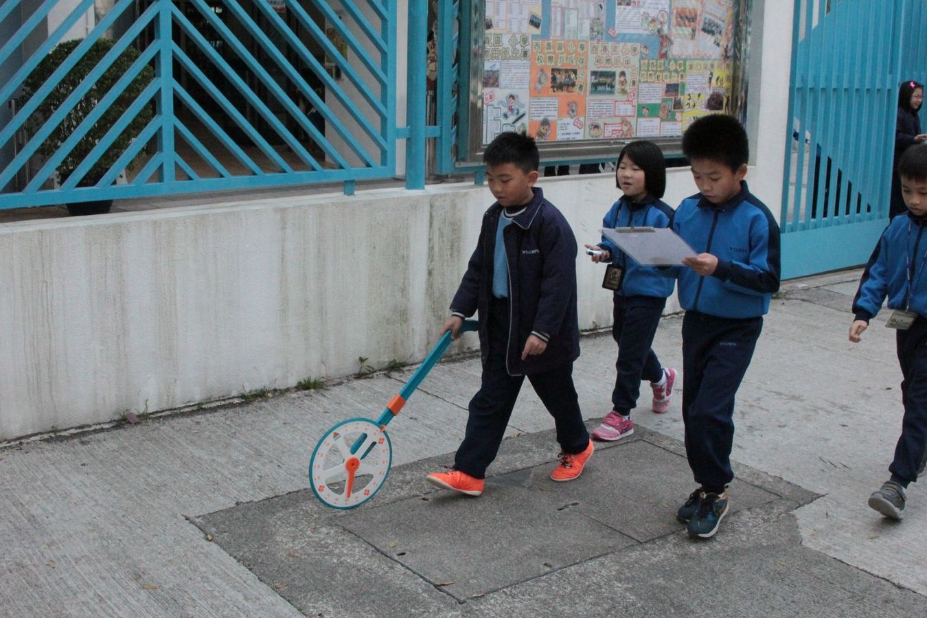 配合本校數學科課程,本校安排一年級及三年級同學到戶外進行學習活動,於真實環境下,把課堂知識應用於日常生活中。 安排三年級同學到本校至寶琳港鐵之間的行人路,學習在真實環境下利用不同工具進行距離量度
