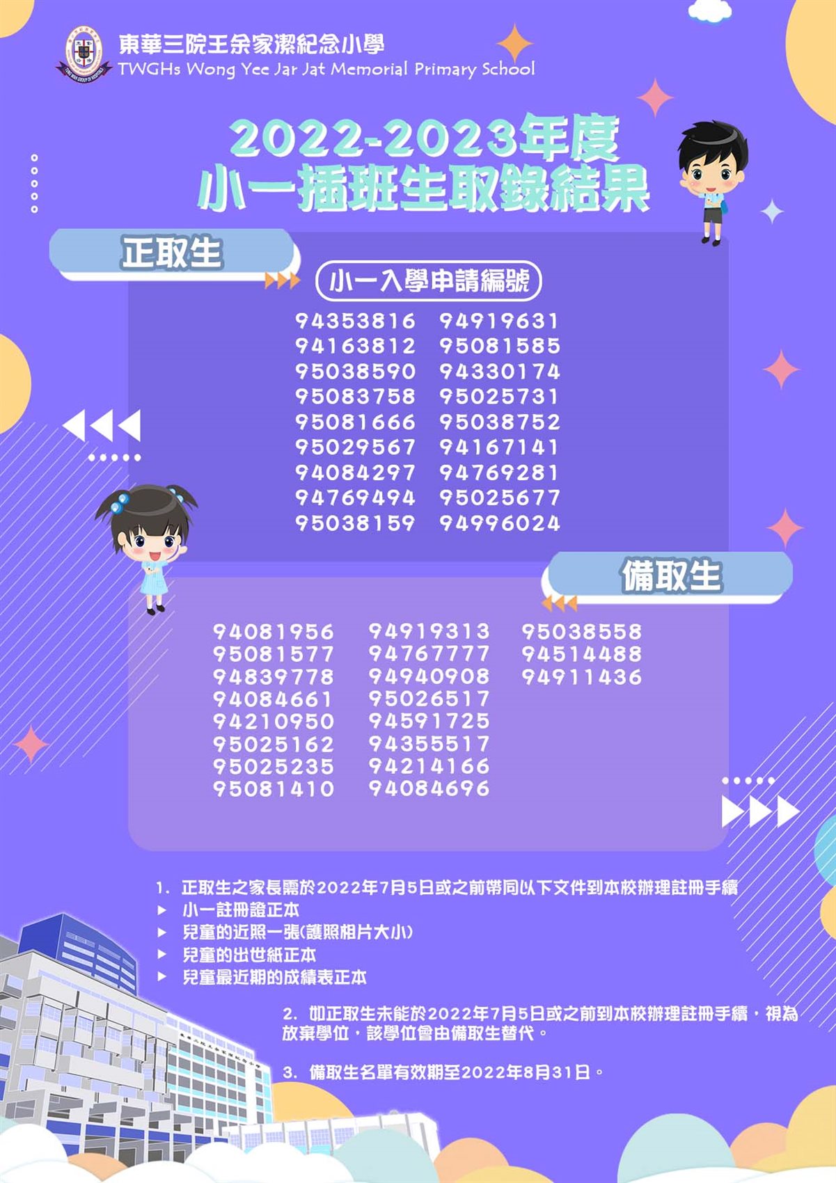 - 本校將於一星期內致電通知入選者有關第二輪面試的日期和時間,落選之申請者亦會收到校方的書面通知。