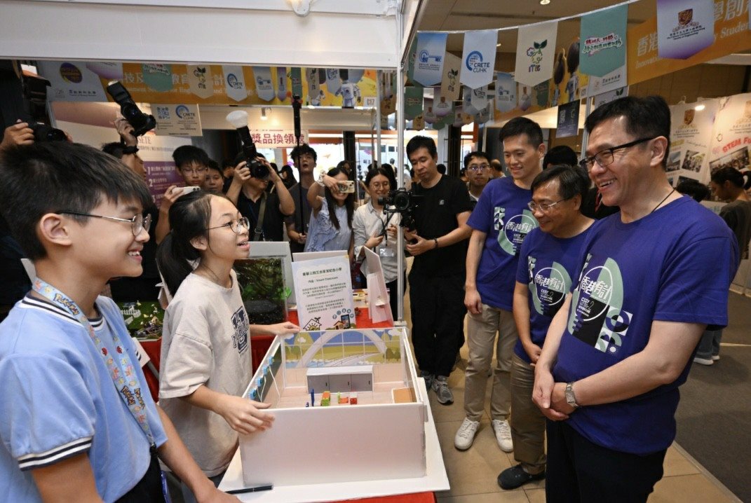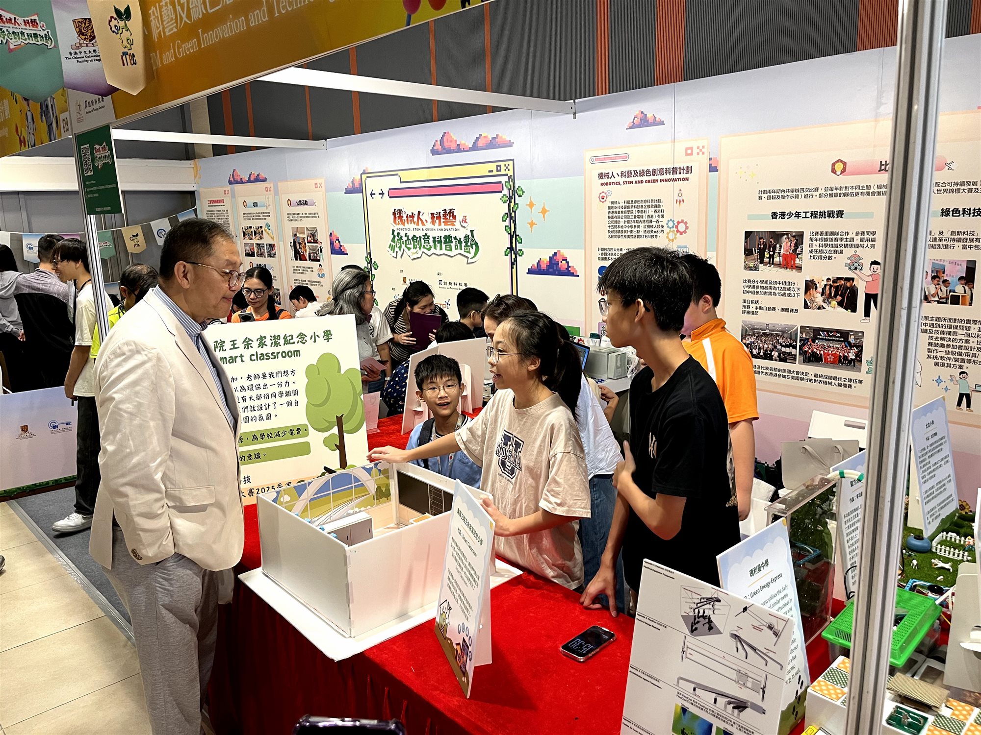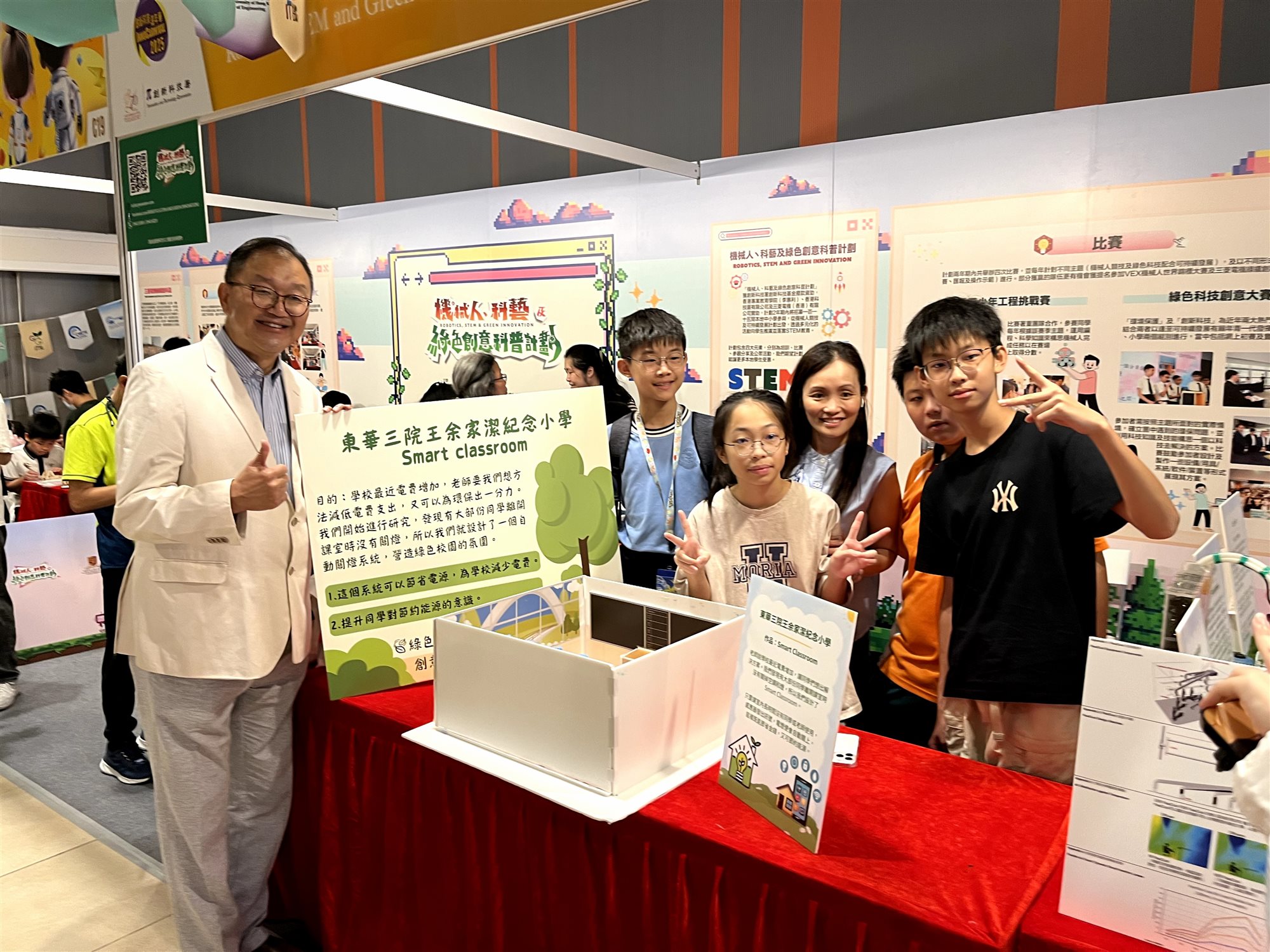 本校學生獲邀參與創新科技嘉年華2025,學生們熱情展示他們的「Smart Classroom」綠色創新創意科技大賽得獎作品,讓大家的好奇心爆棚!創新科技及工業局局長與中文大學教授也與我們一起互動,分享未來教室的設計。