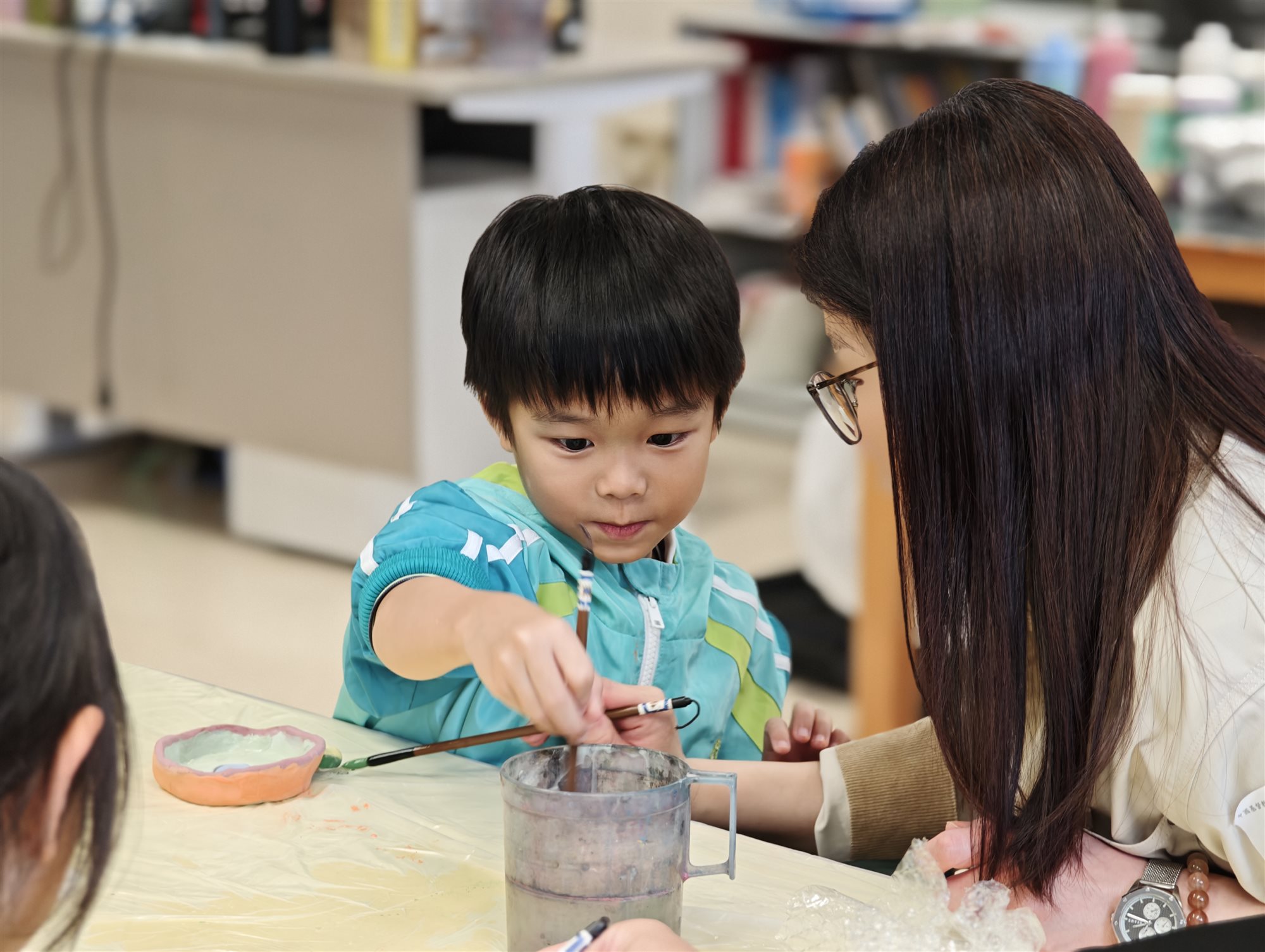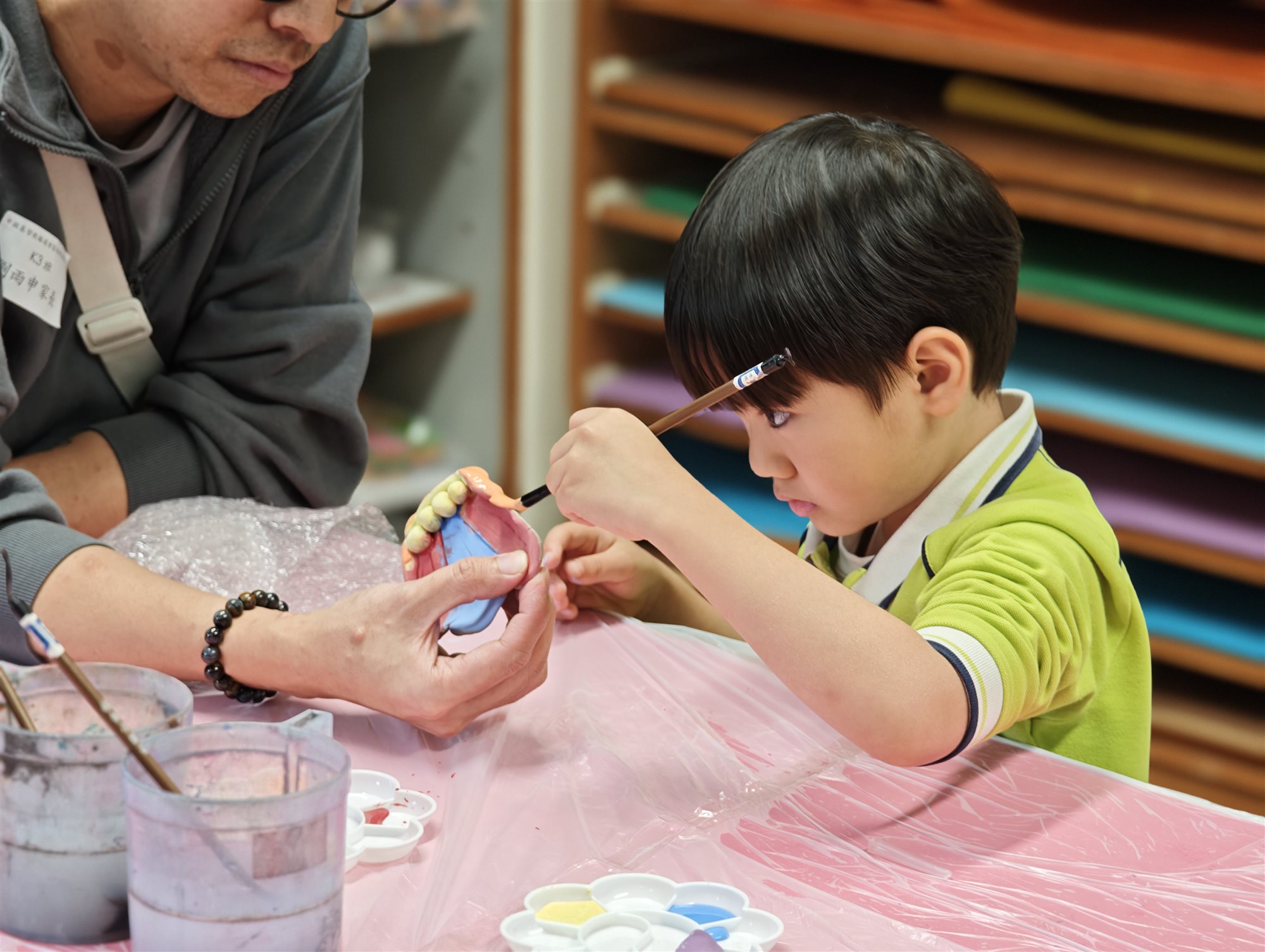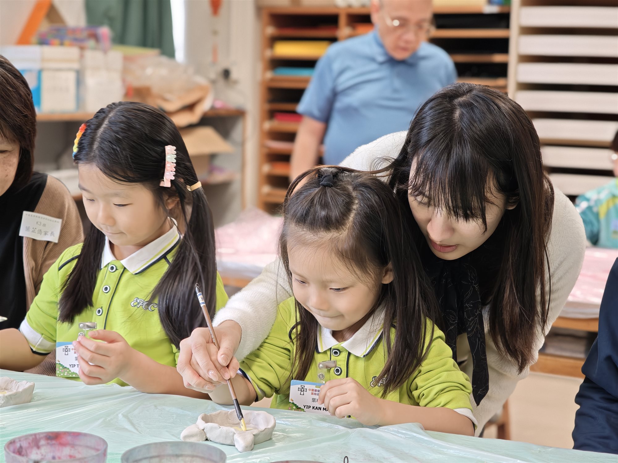 「幼稚園捏塑童真,小學添上色彩」 播道會茵怡幼兒學校的孩子們先在幼稚園親手製作陶泥作品 ,之後蒞臨本校,由本校視覺藝術老師聯同陶藝專業導師細心指導,為作品進行上色創作 。 從孩子們專注投入的神情,到完成作品時滿足而自豪的笑容,每一件陶藝作品都承載着童真、想像與故事 除了陶藝上色活動外,學生、家長及老師亦參觀了本校的 Get Set Go 課程,親身了解本校如何透過多元而具啟發性的學習活動,裝備學生面向未來 活動尾聲,本校特別為每一位出席者頒發出席證書 ,盼望孩子們記住自己勇於嘗試、用心創作的片刻,並將這次經驗化成升讀小學路上的一份溫暖而美好的回憶