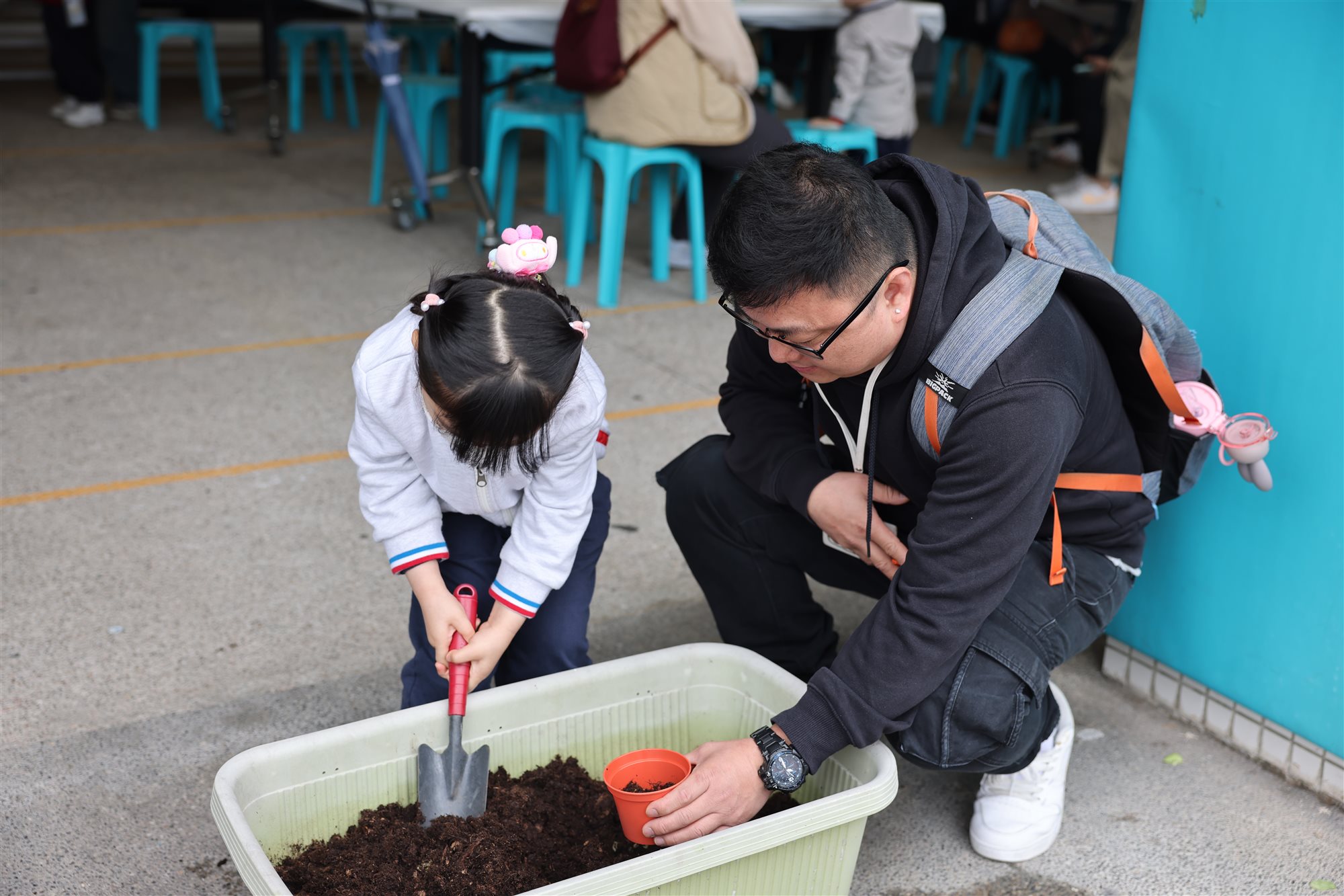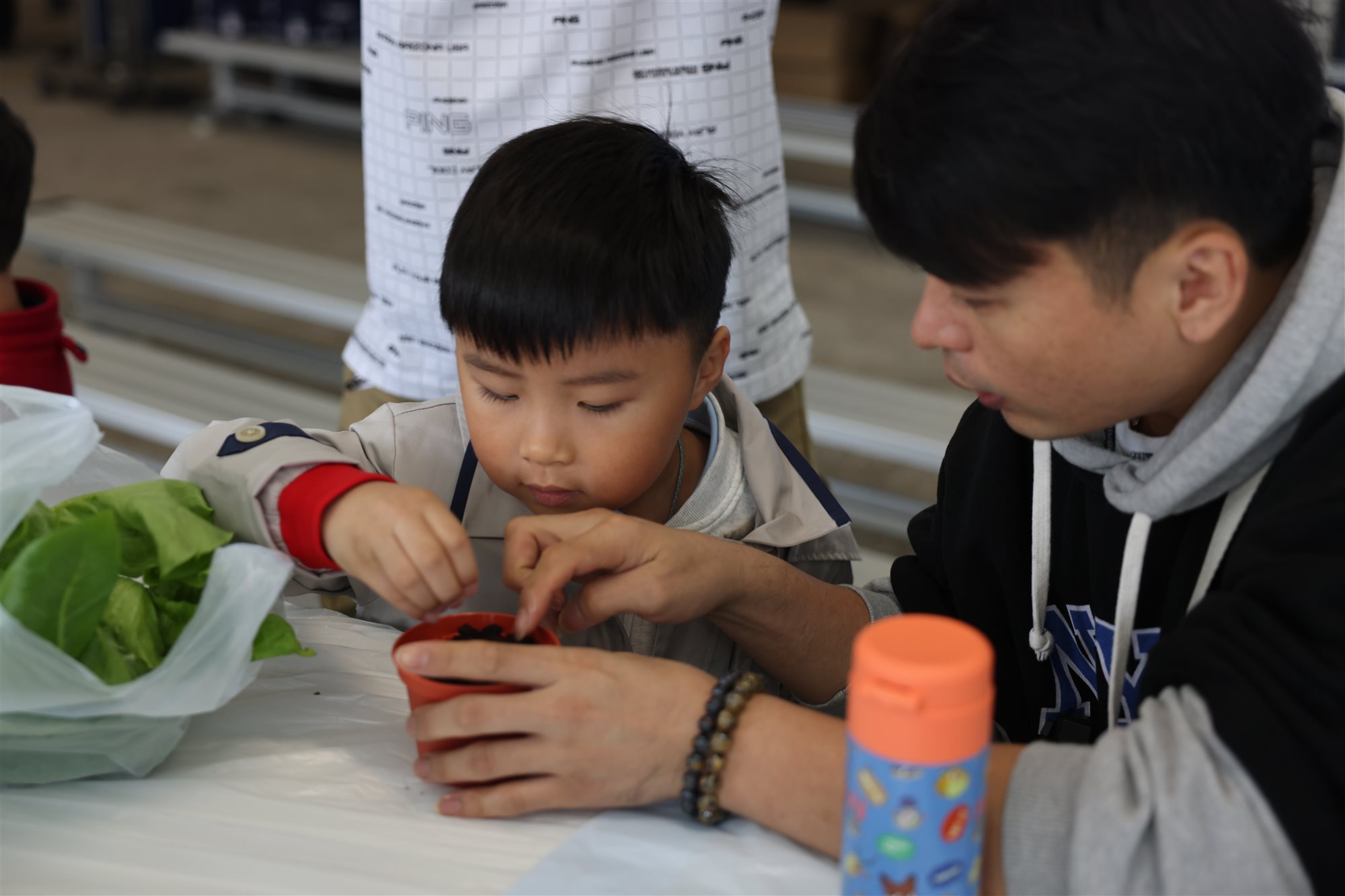 最溫馨的環節莫過於親子共植時光,家長與小朋友齊心合力種下小盆栽,把這份綠意與滿滿的愛帶回家中延續。