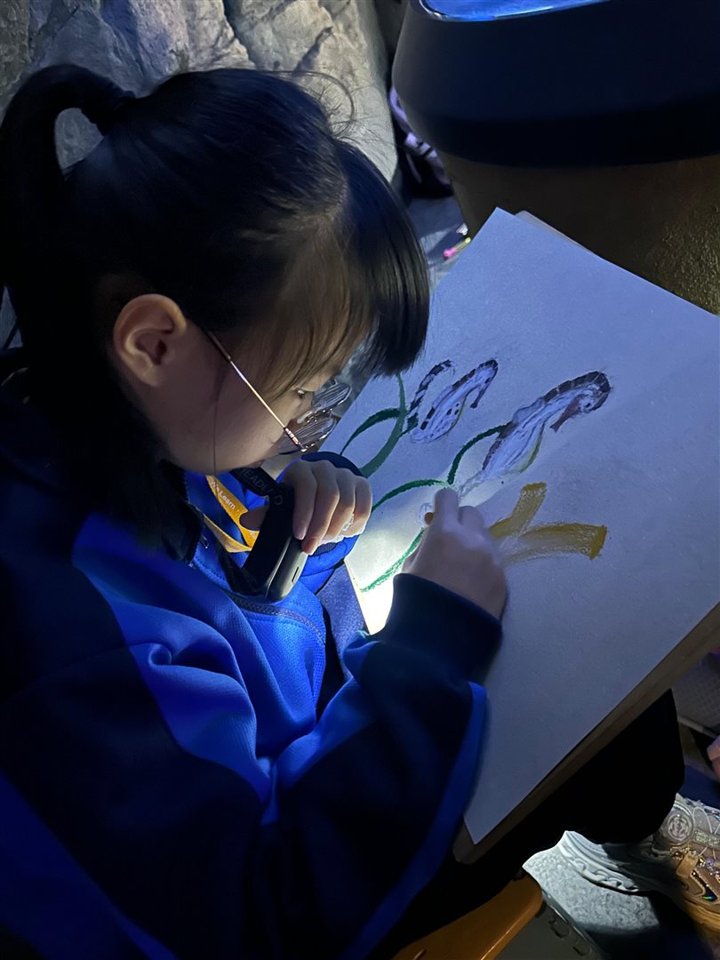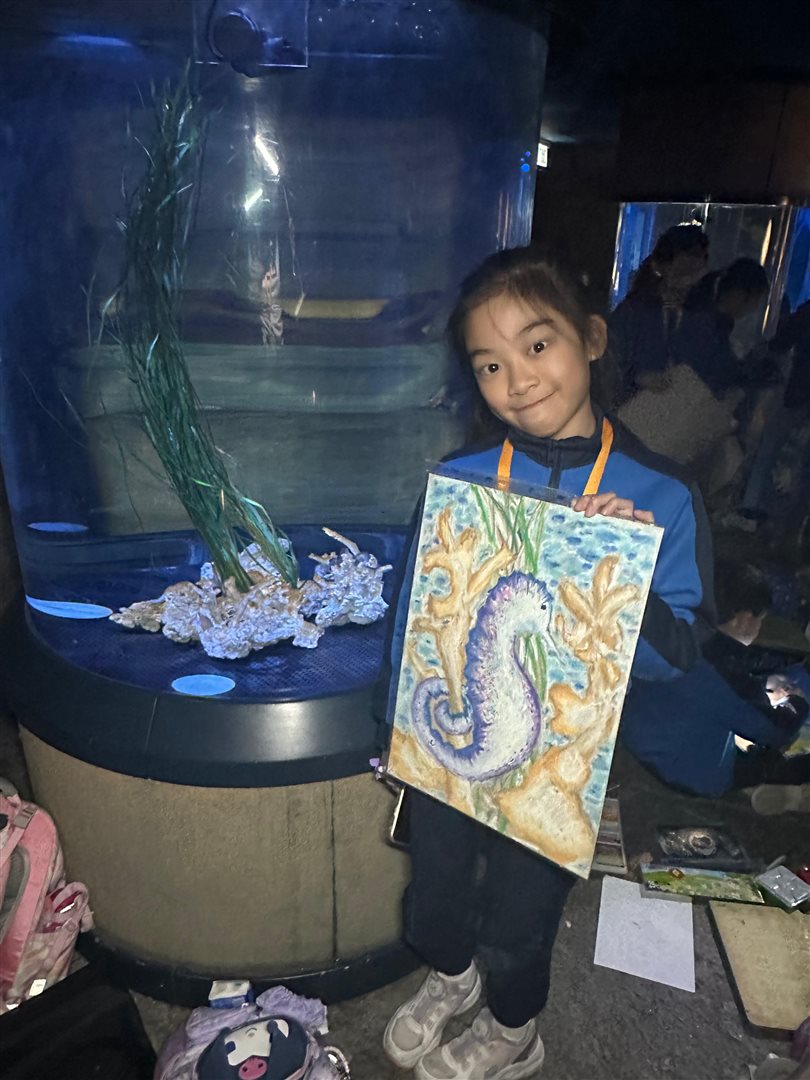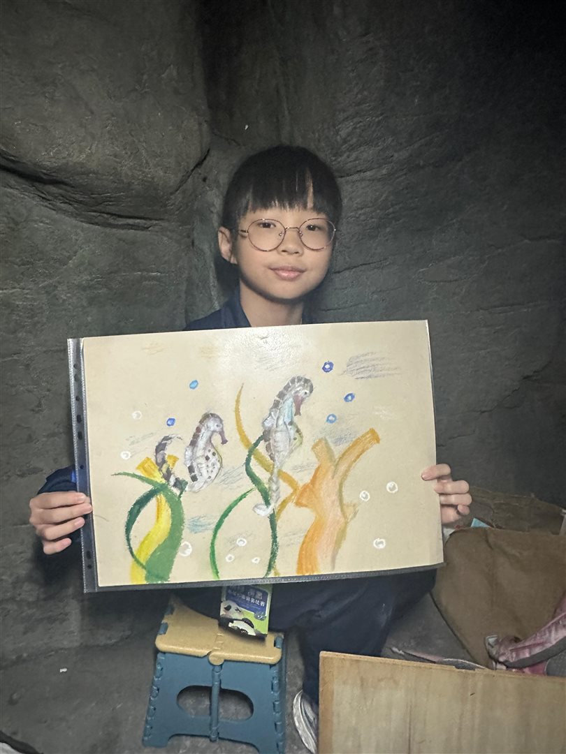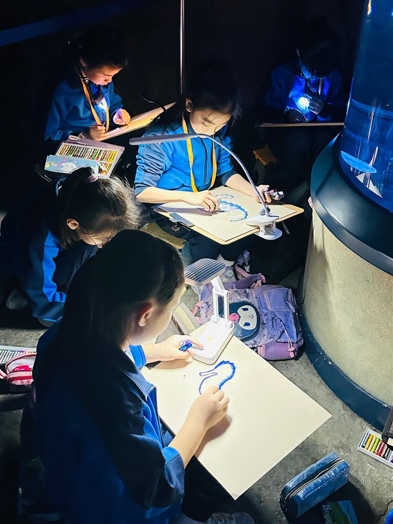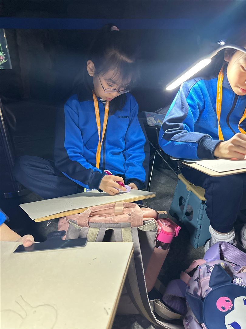 10位三至六年級視藝小達人,拿著大大小小的畫具走進香港海洋公園,參加由教育局課程發展處藝術教育組舉辦、香港海洋公園協辦的「邊學.邊畫」繪畫比賽。 同學們在水族館內細心觀察各種海洋生物,把眼前所見的姿態、色彩和神韻,一筆一畫描繪在畫紙上。 在創作過程中,大家不但發揮藝術觸覺和描繪技巧,也加深了對海洋資源、陸地生物保育及可持續發展的認識。 這次活動讓同學們一邊欣賞自然之美,一邊享受寫生樂趣,留下了難忘而充實的回憶。