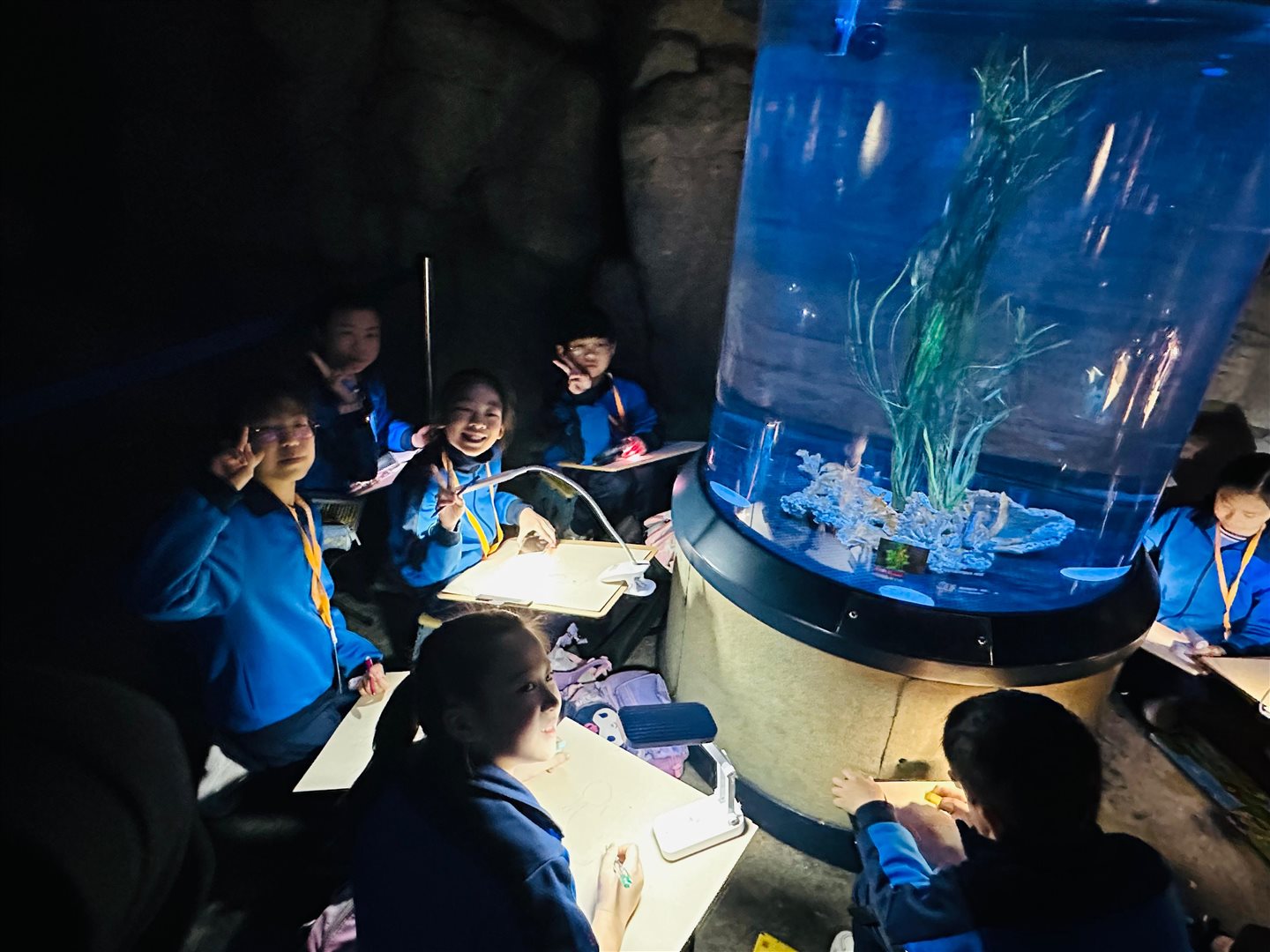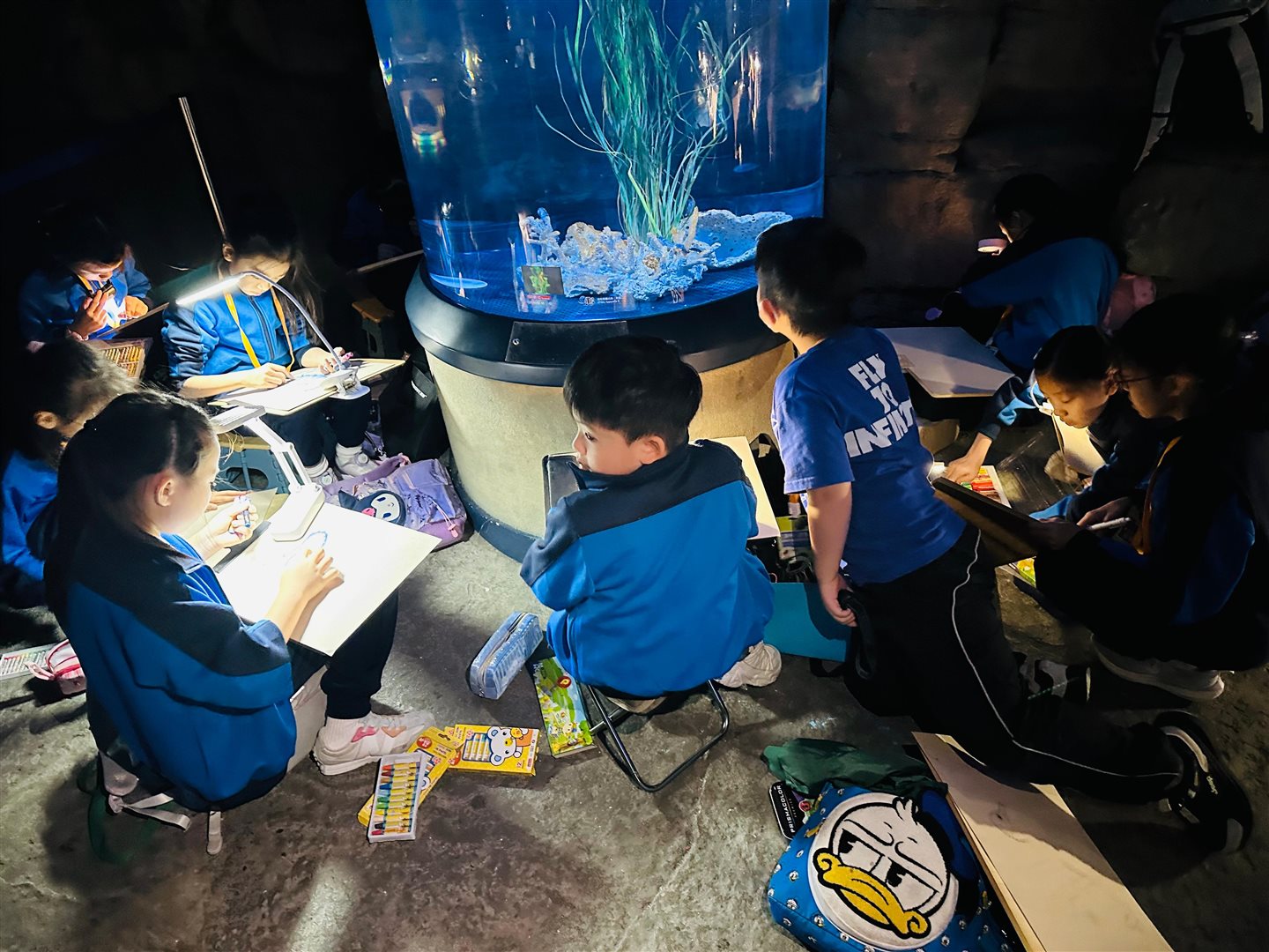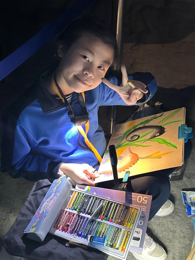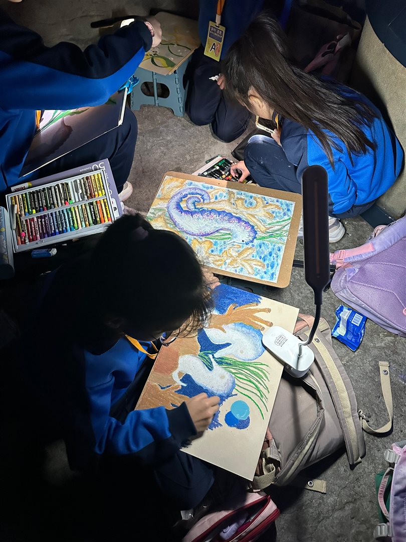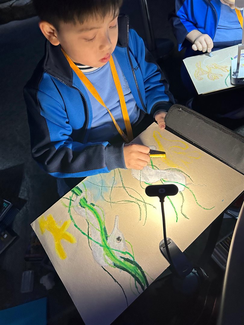 10位三至六年級視藝小達人,拿著大大小小的畫具走進香港海洋公園,參加由教育局課程發展處藝術教育組舉辦、香港海洋公園協辦的「邊學.邊畫」繪畫比賽。 同學們在水族館內細心觀察各種海洋生物,把眼前所見的姿態、色彩和神韻,一筆一畫描繪在畫紙上。 在創作過程中,大家不但發揮藝術觸覺和描繪技巧,也加深了對海洋資源、陸地生物保育及可持續發展的認識。 這次活動讓同學們一邊欣賞自然之美,一邊享受寫生樂趣,留下了難忘而充實的回憶。