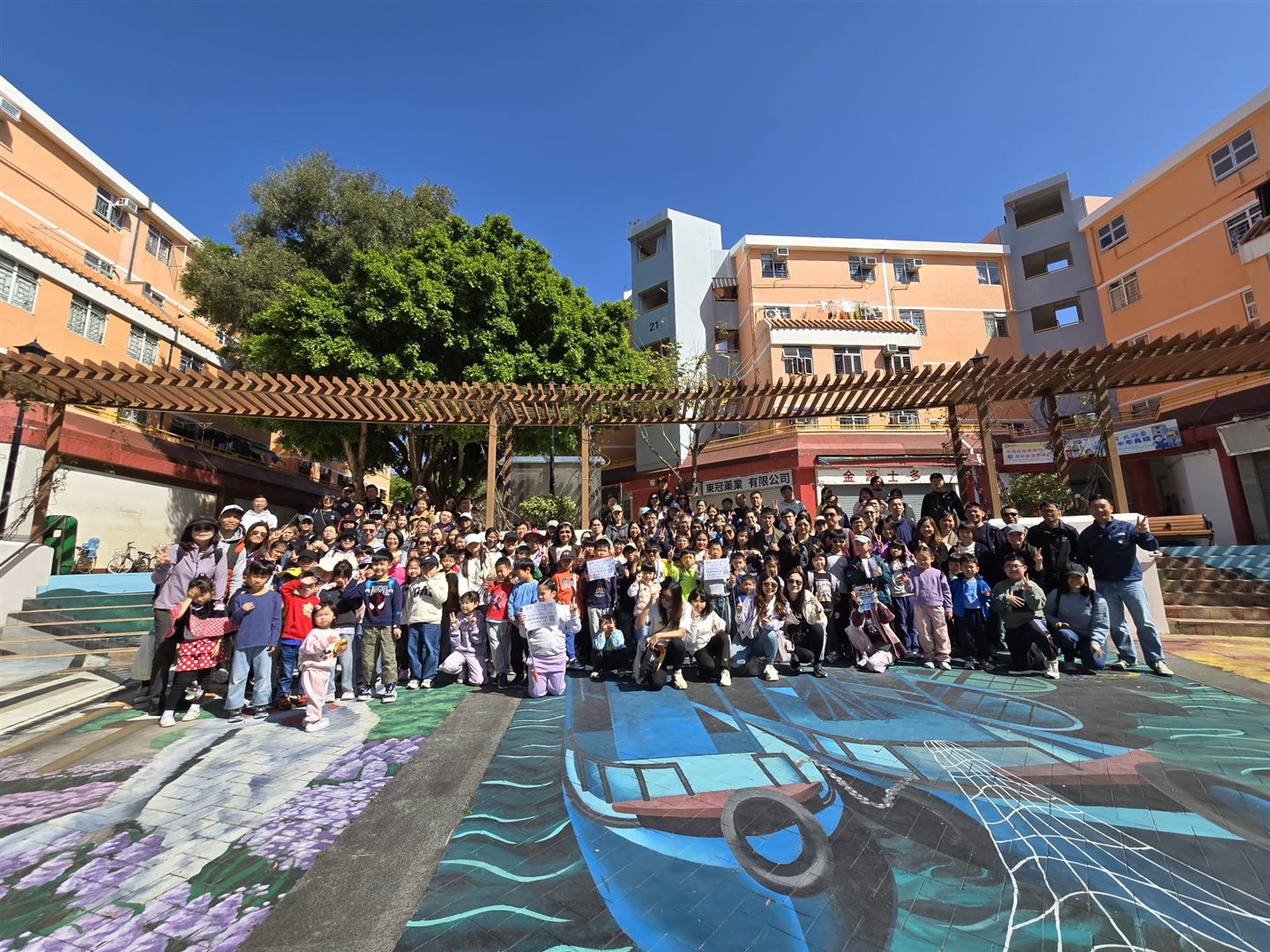 家校親子旅行在一片明媚春光中展開。目的地是別具歷史韻味的沙頭角,當日天氣宜人,不冷不熱,最適合結伴出遊。三架旅遊車載著老師與學生共156人,一路上笑語不斷。