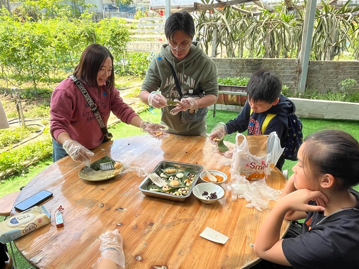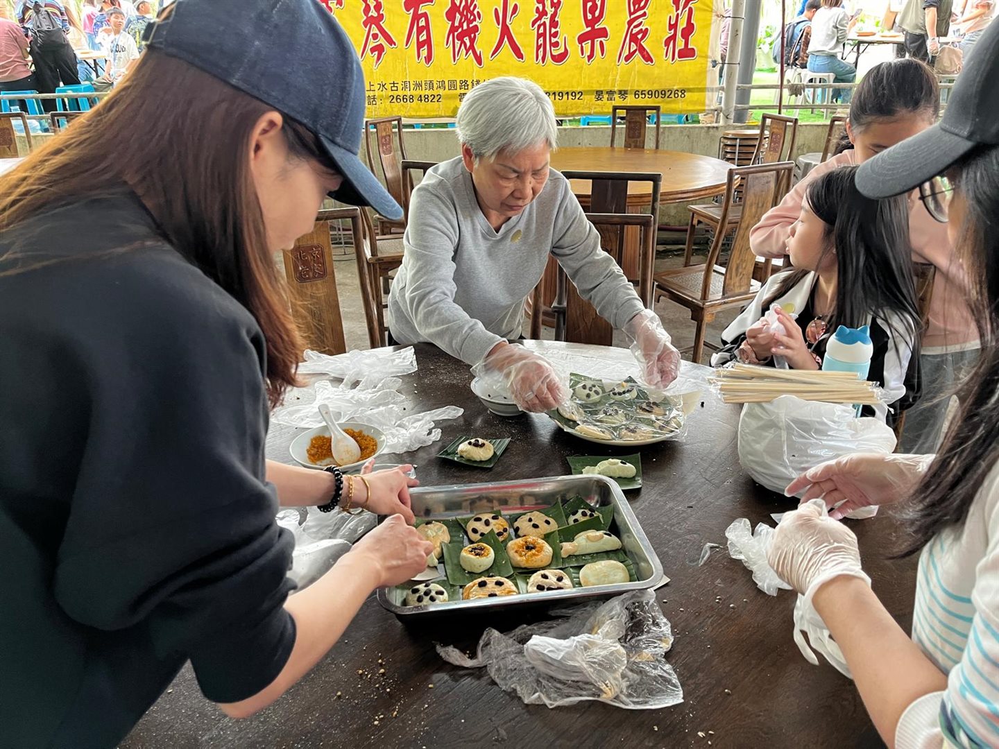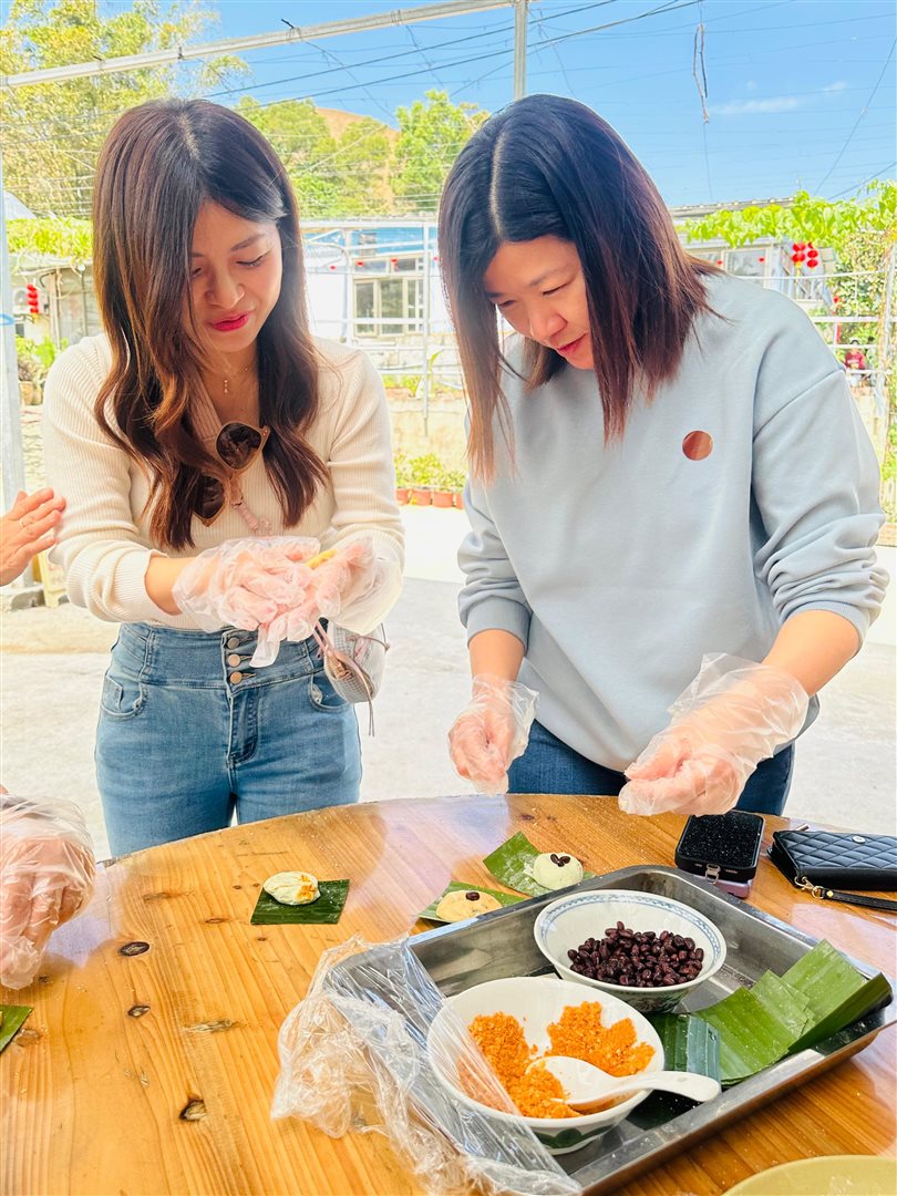 上午我們漫遊沙頭角,欣賞獨特的邊境風光與人文故事。午後轉往富琴火龍果農莊,享受熱鬧的BBQ時光,炭火香氣四溢。最令人難忘的是親手製作DIY茶果,從搓皮到包餡,家長與孩子們合作無間,歡聲笑語中揉進了傳統的味道。
