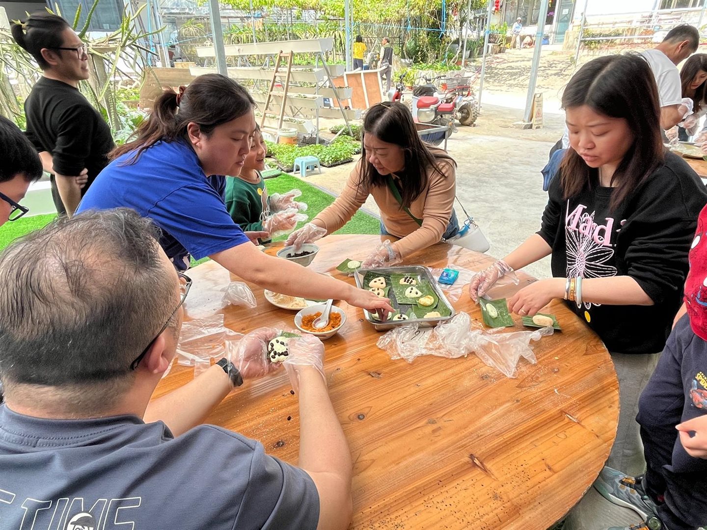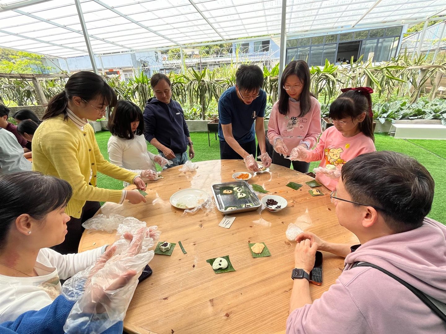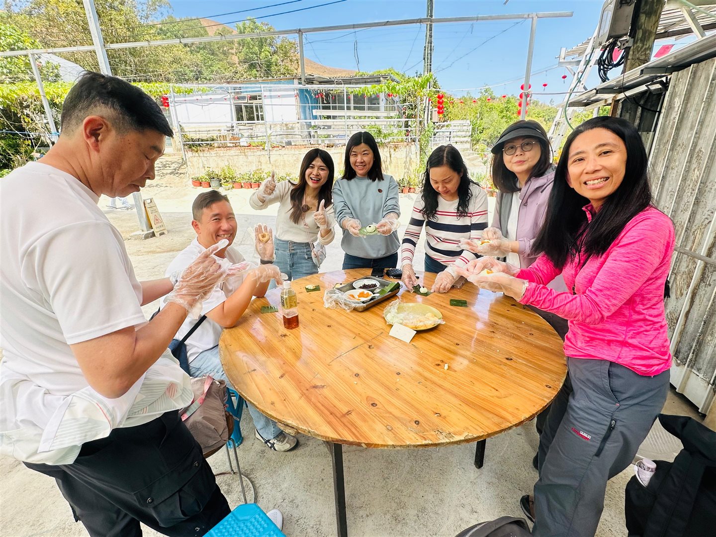 上午我們漫遊沙頭角,欣賞獨特的邊境風光與人文故事。午後轉往富琴火龍果農莊,享受熱鬧的BBQ時光,炭火香氣四溢。最令人難忘的是親手製作DIY茶果,從搓皮到包餡,家長與孩子們合作無間,歡聲笑語中揉進了傳統的味道。