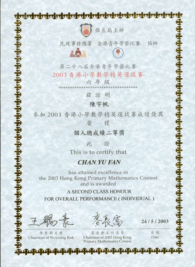 2003 第二十八屆全港青年學藝比賽「2003香港小學數學精英選拔賽」