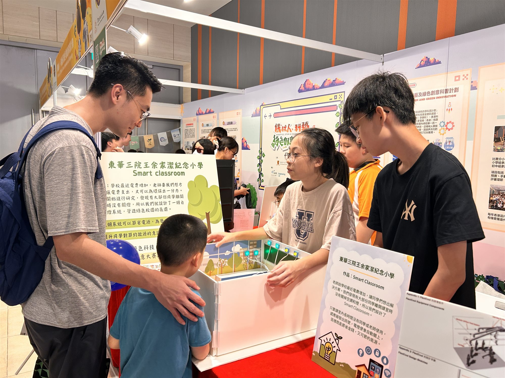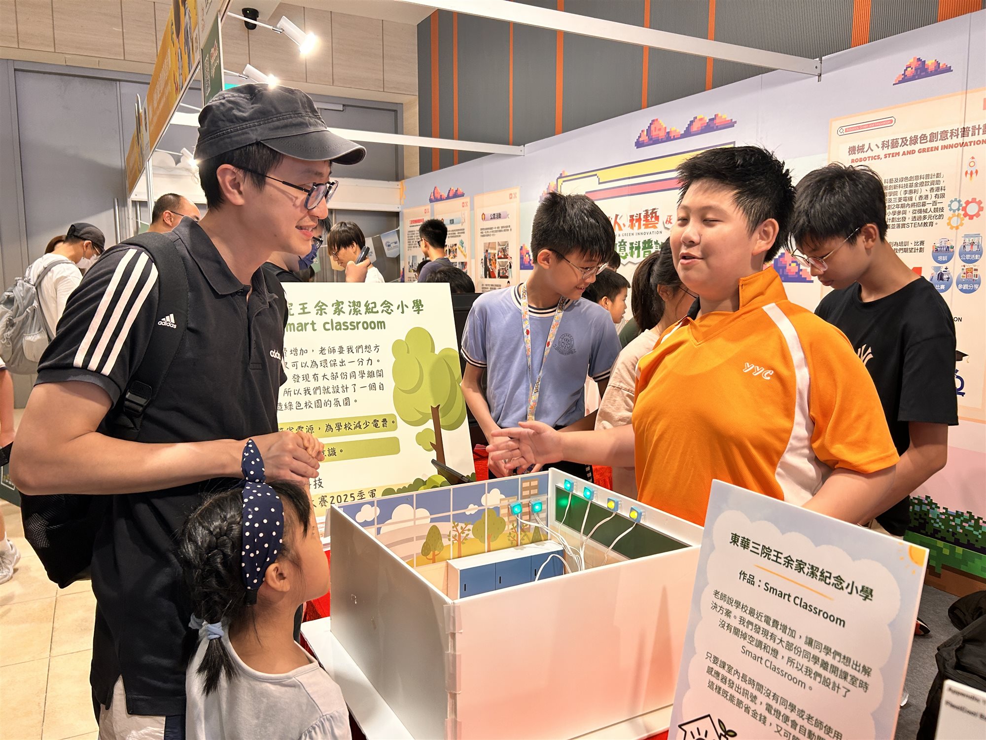 本校學生獲邀參與創新科技嘉年華2025,學生們熱情展示他們的「Smart Classroom」綠色創新創意科技大賽得獎作品,讓大家的好奇心爆棚!創新科技及工業局局長與中文大學教授也與我們一起互動,分享未來教室的設計。