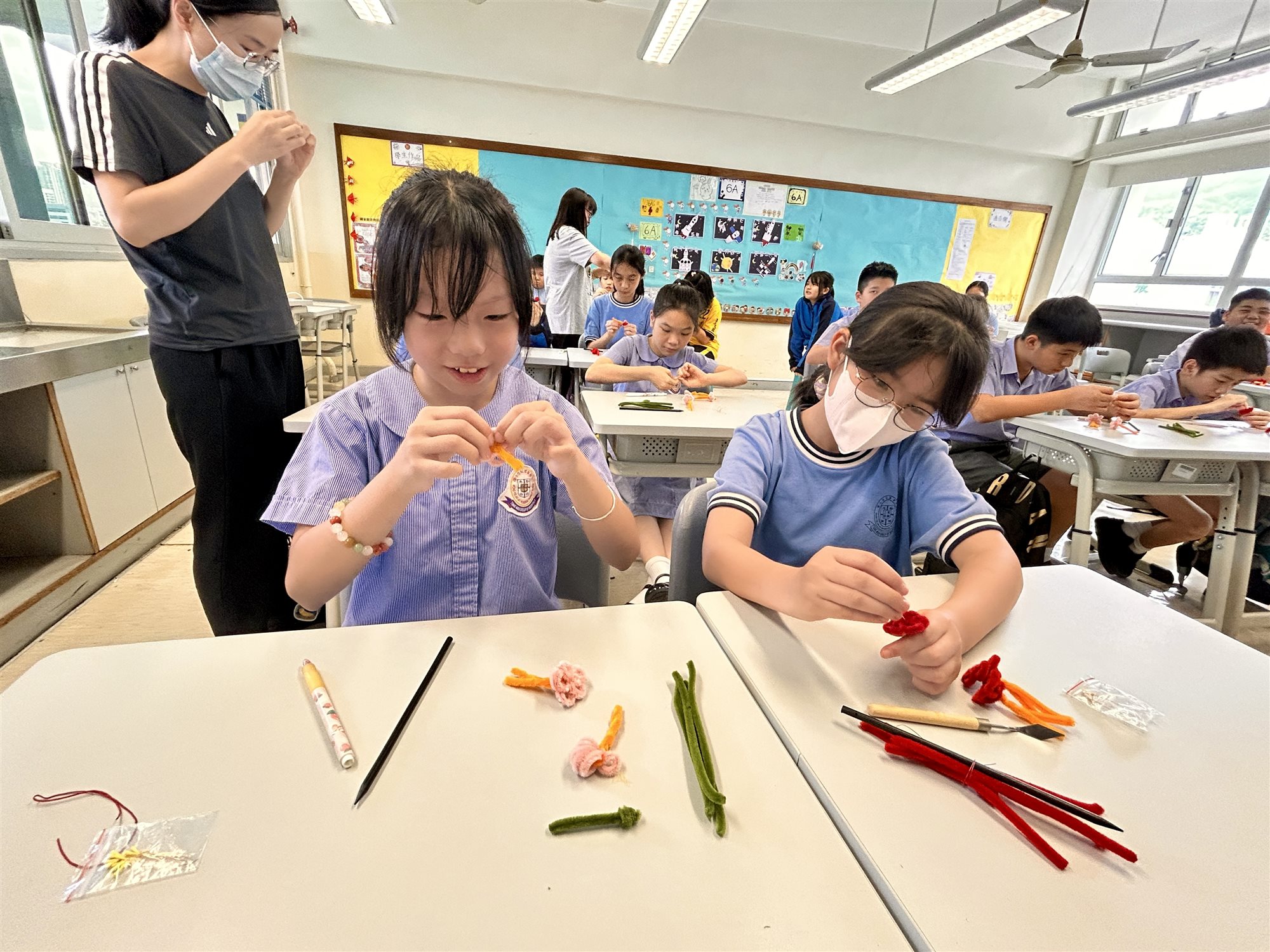 同學們變身成為小小藝術家,親手體驗了傳統技藝的製作。從捏出可愛麪塑、縫製清香香囊,到寫出美美的花鳥書法、動手製作線裝書,還有大紅花牌、草編、糖畫、絨花、皮影戲製作和蒸籠技藝製作……每種技藝都令我們獲益良多!我們不但體驗到動手做的樂趣,更驚嘆這些傳統技藝的巧妙。