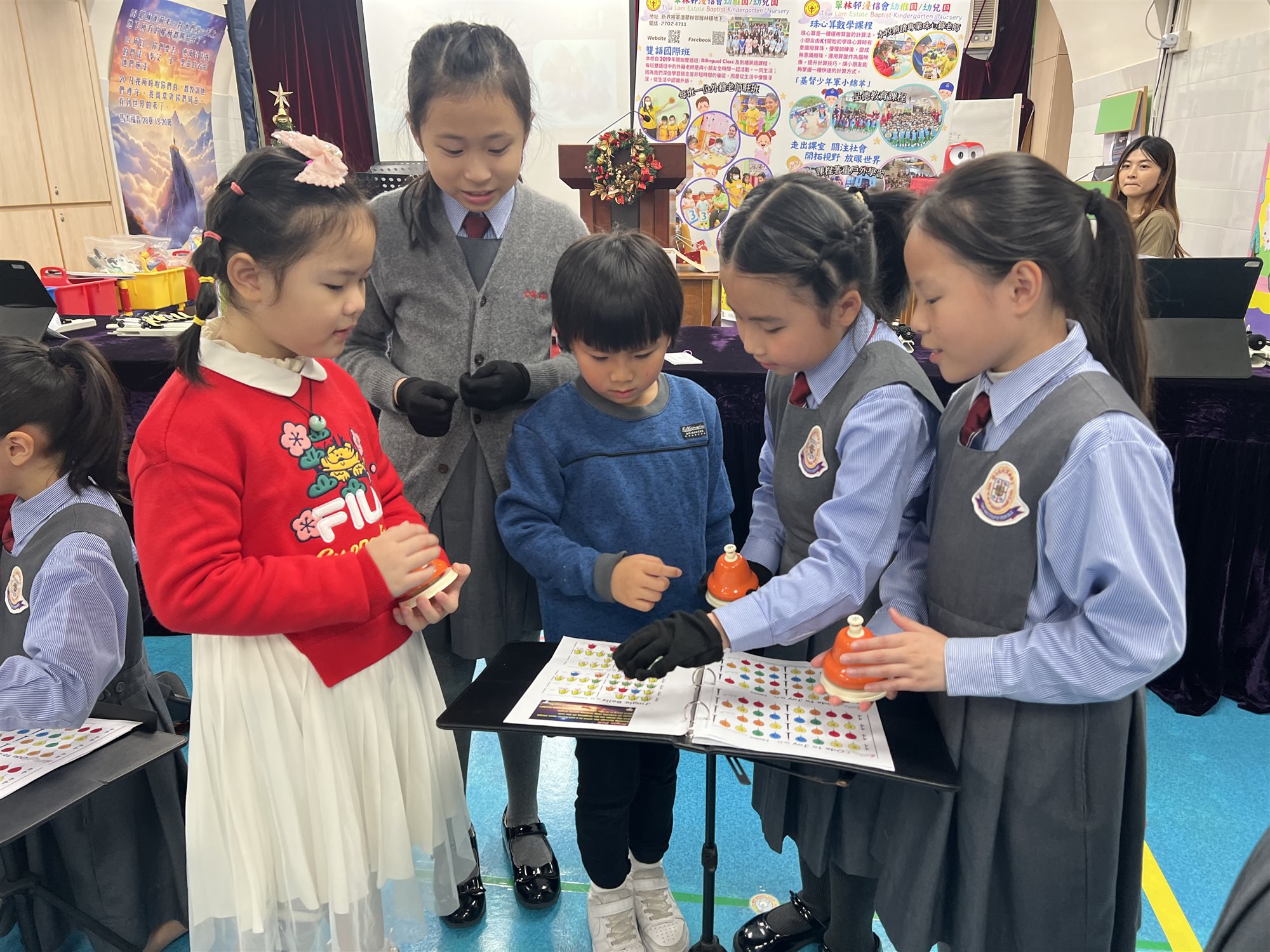 OLE 服務學習外出實踐活動 Part 1 在這個洋溢着愛與希望的聖誕季節,我校的手鐘隊與合唱團踏上了一段溫暖人心的旅程—「聖誕愛心送暖行動」。他們來到翠林邨浸信會幼稚園,用一曲曲清脆悅耳的手鐘樂章與動人心弦的歌聲,為小朋友們送上最真摯的祝福。 當手鐘的聲音在空氣中輕輕蕩漾,孩子們的眼睛閃爍着驚喜與喜悅;當合唱團唱出一首首熟悉的聖誕旋律,溫柔的歌聲彷彿為寒冬注入了一絲絲溫暖的陽光。這不僅是一場表演,更是一場心與心的交流,是一份無聲卻深刻的愛的傳遞。 學生們用音樂傳遞關懷,也在互動中學會了關心與付出。他們明白,真正的學習不只在課堂,更在每一次用心的付出、每一次真誠的微笑之中。這一天的服務學習,讓愛的種子悄悄在每個人的心中發芽,成長為溫柔而堅韌的力量。 願這份來自心靈深處的祝福,伴隨着聖誕的鐘聲,長久地迴響在每一位小朋友與參與者的心中。