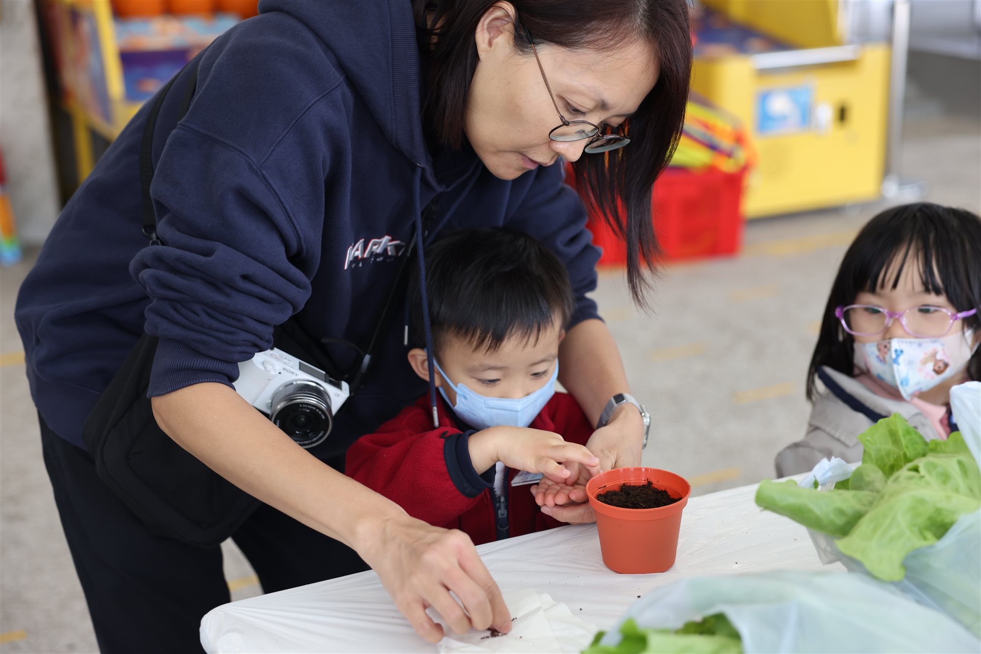 最溫馨的環節莫過於親子共植時光,家長與小朋友齊心合力種下小盆栽,把這份綠意與滿滿的愛帶回家中延續。